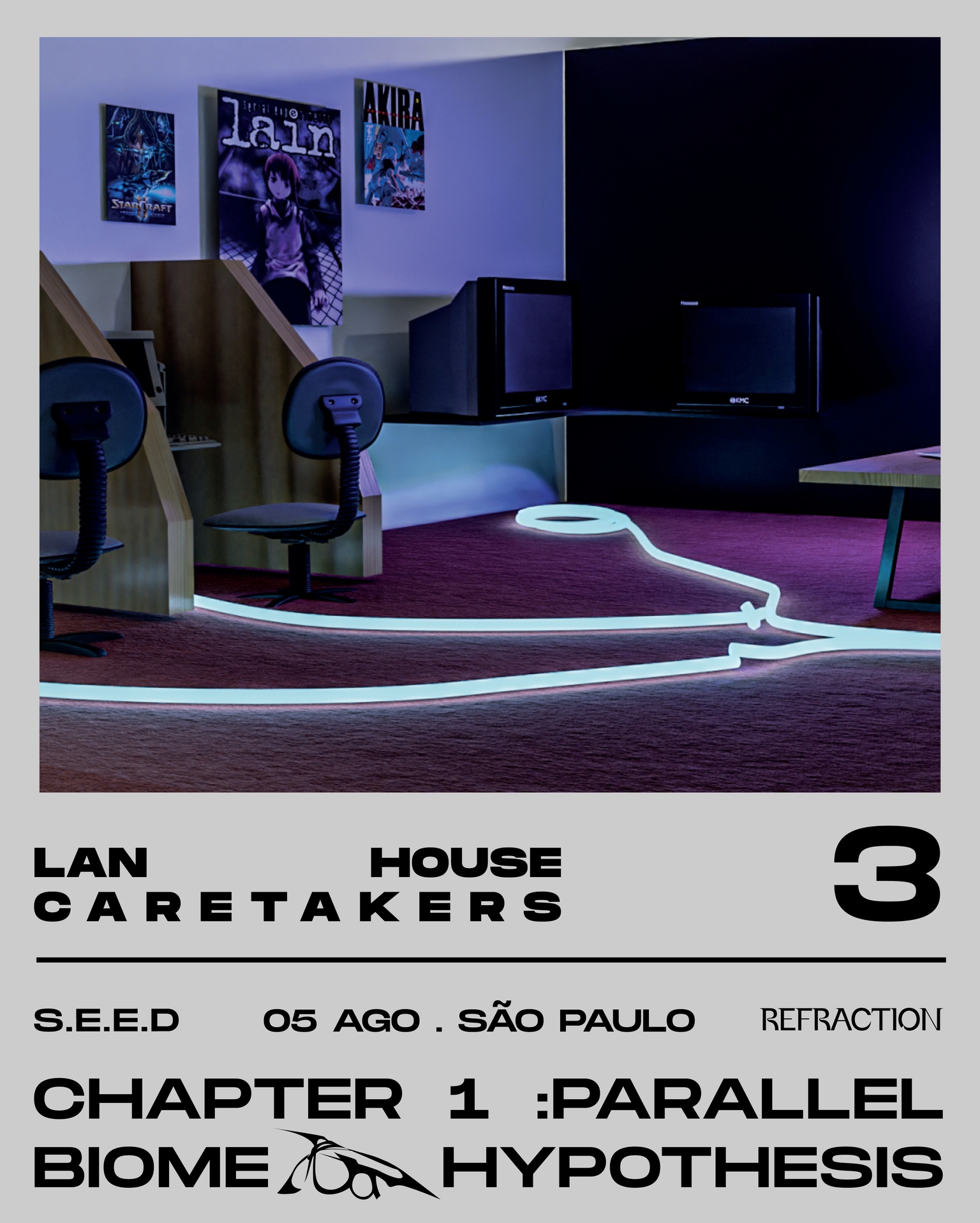 On one wall, you can see the rizomatic representation of the organization's research, with red wires connecting the points like an investigative movie panel from the 90s about conspiracies.