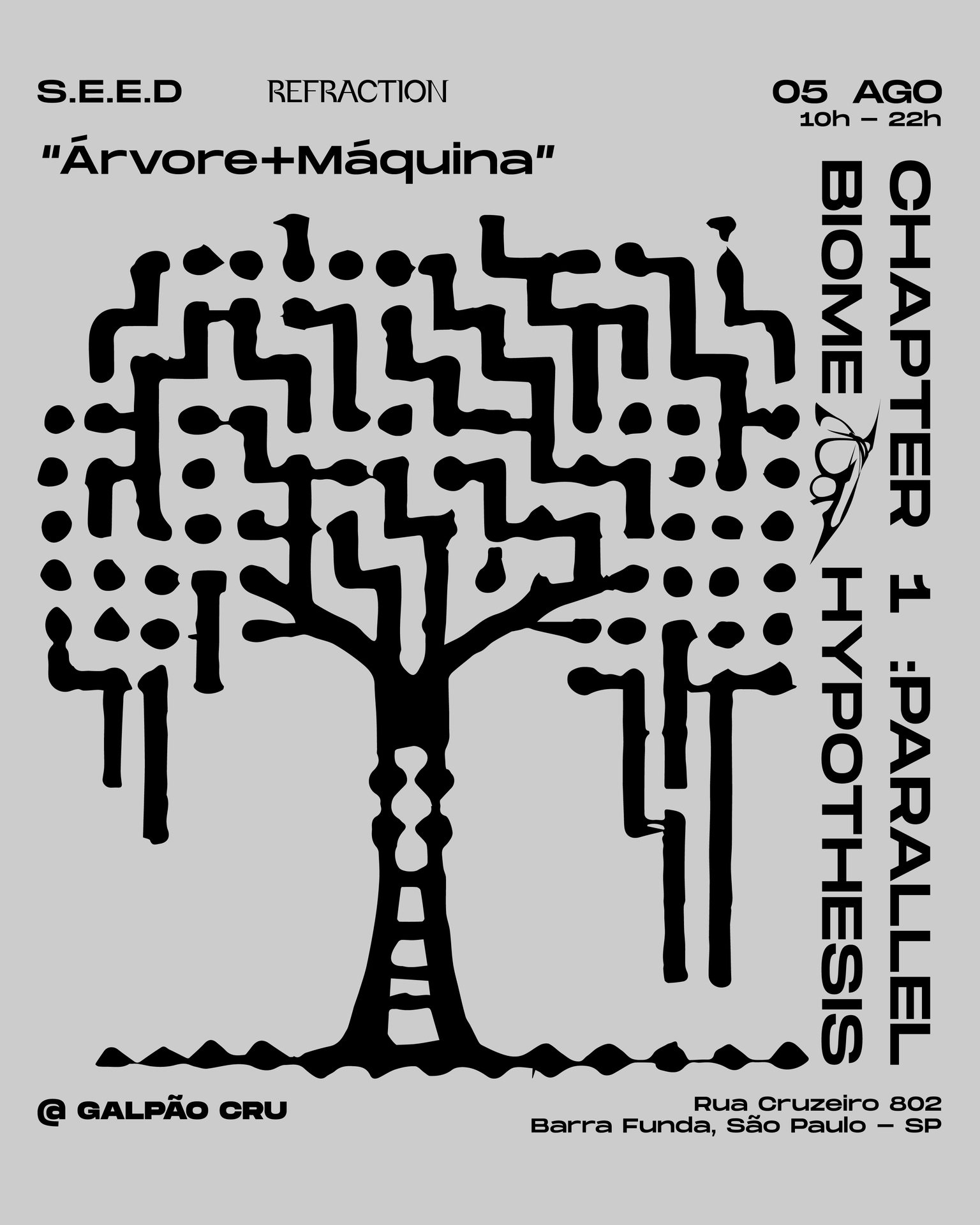 Conceitualmente, o projeto de exposição S.E.E.D - Capítulo 1: Hipótese do Bioma Paralelo" parte da germinação de um ser/sistema híbrido orgânico-inorgânico: a convergência da "tecnologia-árvore" e da "tecnologia-máquina", ambas os modos de produzir formas de pensamento e vida imbricadas no mesmo ser, conjugadas no mesmo corpo, ressoando o movimento confluente que dá início ao coletivo S.E.E.D. como uma nova forma de vida coletiva, bem como os nossos desejos para esta exposição. Tal hibridização de sistemas constitui a interface de pensamento comum que alimenta as inquietações de S.E.E.D., materializadas no coração da exposição de forma abstrata e concreta.